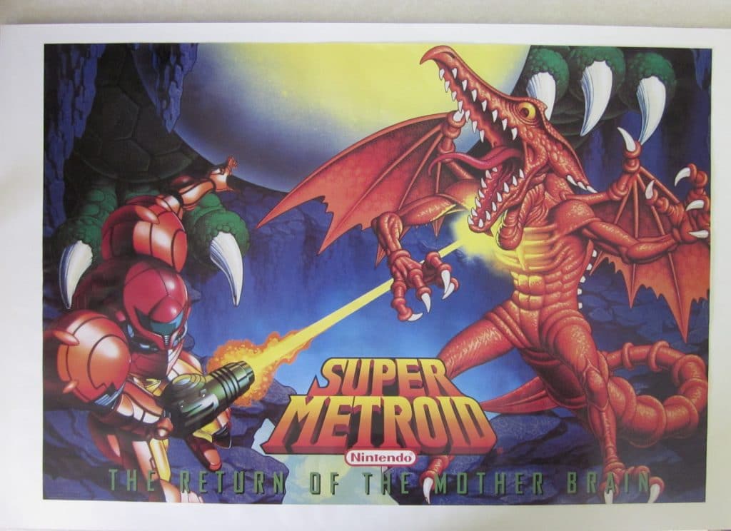 Super Metroid Poster – The Return Of The Mother Brain – Store Promo – A high asking price, but I’ve found nothing on this poster. Absolutely beautiful print of the box art.