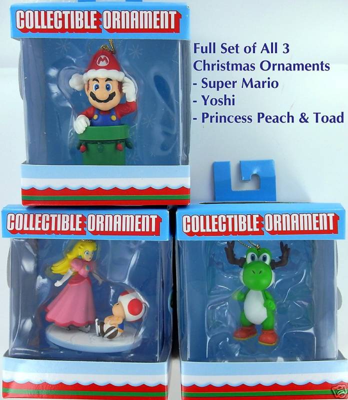 Set Of three NIB Nintendo Ornaments – Santa Mario, Reindeer Yoshi and Skating Princess & Toad