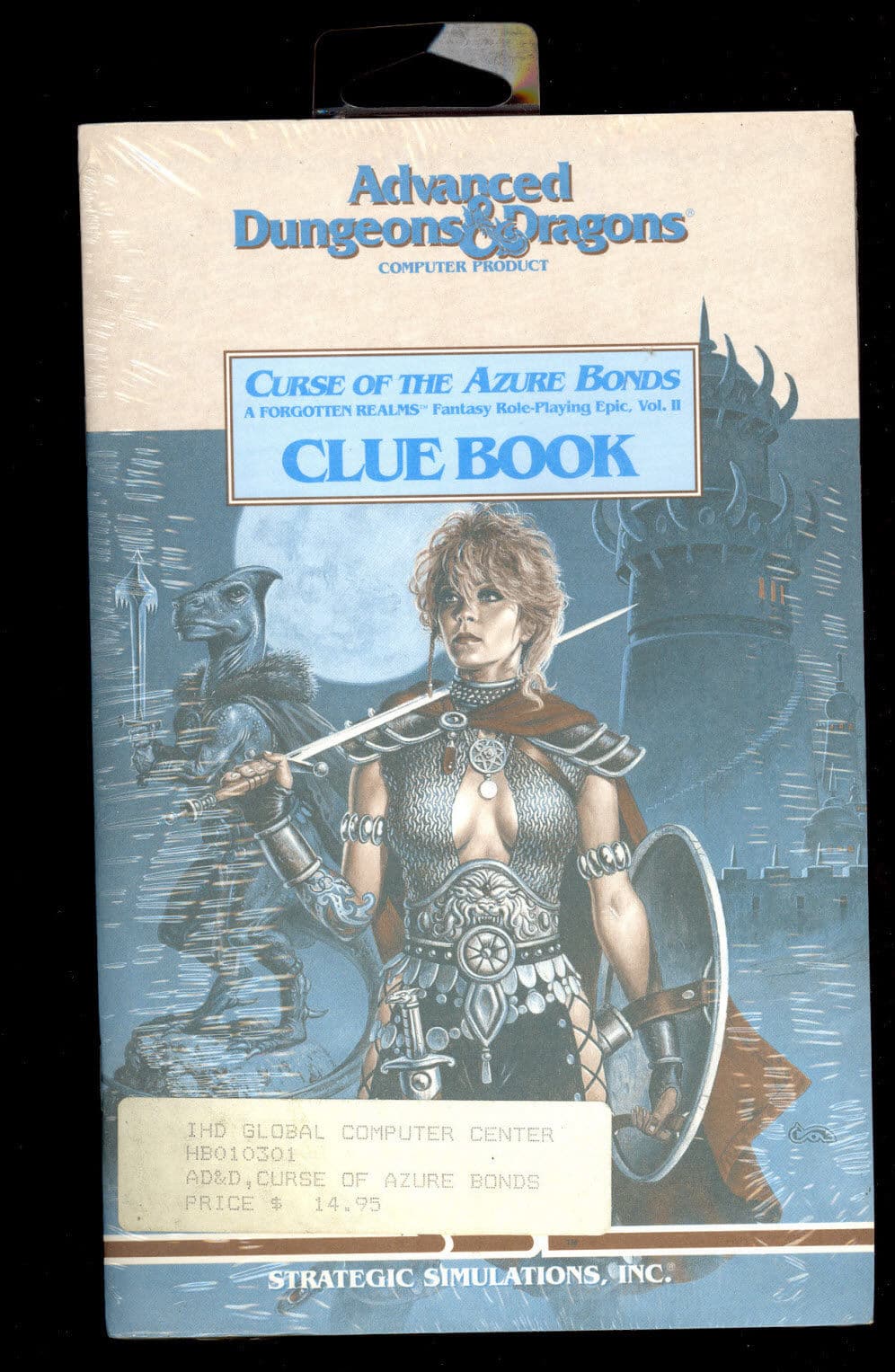 - Curse of the Azure Bonds SSI Clue Book – Still sealed in its original wrap. Plastic looks a bit beat up, but you can tell the book underneath appears great!