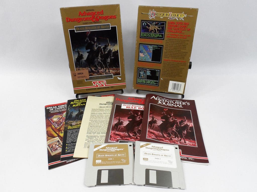 - Advanced Dungeons & Dragons: Death Knights of Krynn Amiga CIB – Seller is in Britain. Comes in original box with the following: 1991 catalog, Promotional flyer, Data card, Rule Book, Adventure’s journal, 2 x 3½” game disks