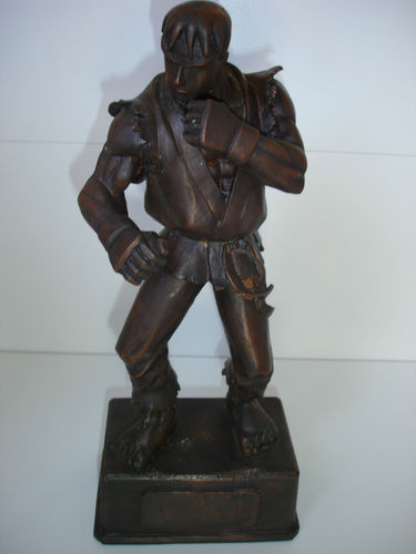 These are the only 2 Bronze statues of this size. The only other one is the larger one which was given to the winner to hold for a period of one year until the next tournament. at E3. These were manufactured in 1997+- and use for about 3 years. It is not sure if these were manufactured for sample or pre-production units. The larger one was giving to a magazine “Tips and Tricks” or “Video Game Magazine” (to the best of their knowledge).