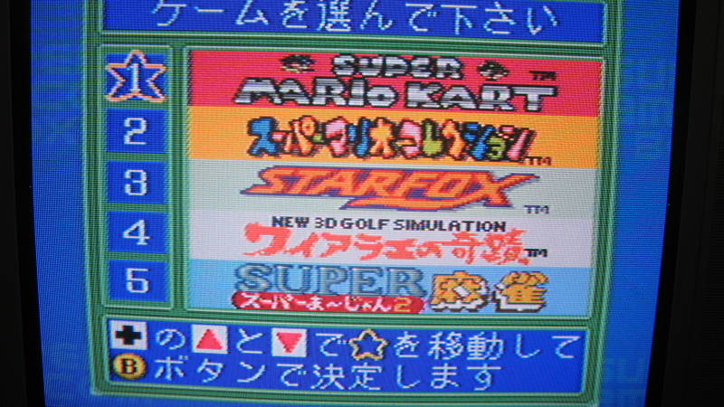The Super Famicom Box was a game system used in hotels in Japan. Using special carts, the hardware was a play to play system. Insert money, and you were given five minute of playtime. The games themselves were specially produced multicarts with more than one game on them. One such cartridge contains Star Fox, Super Mario Kart and Mario All-Stars. I believe that this cart is actually required for the system to boot. This specific auction also includes New 3D Golf Simulation and Mahjong.