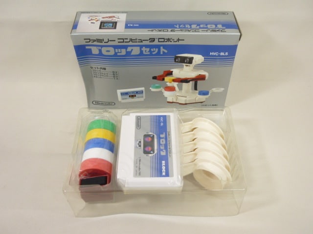 BLOCK Set Robot Famicom – ROB’s Stack Up blocks, but in Famicom white rather than NES gray. To be used with the Japanese ROB, but likely compatible with an American one if you can’t find a complete American Stack Up set