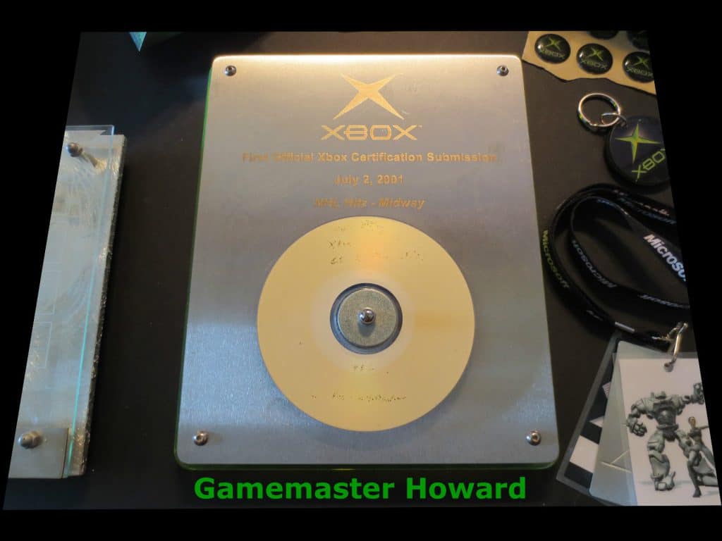The First Official Xbox Certification Submission DiscMounted is the original NHL Hitz disc dated June 28th, 2001 submitted by Midway on July 2nd, 2001. This is the disc that launched the XBOX biz as we know it today. This item was given to me in 2001 by the then-head of the XBOX Certification Team.