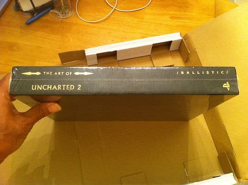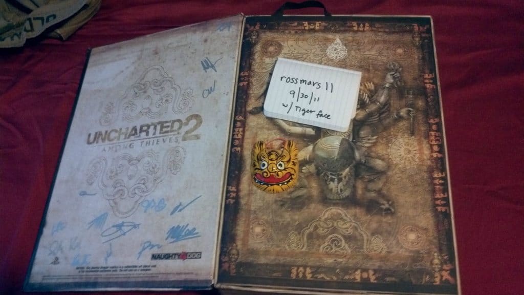Interestingly enough, another rare Uncharted collectable has also become available for sale. It’s the Uncharted 2 Limited Folio Edition Art Book. Naughty Dog and book publisher Ballistic Publishing partnered to print a single run of 200 of these books. In addition to being bound in suede and embossed with gold embellishments, each book features a certificate of authenticity which is hand signed by four key Uncharted 2 developers. These books don’t come up for sale very often. In fact, this is only the third book that I’ve ever seen available in the aftermarket.