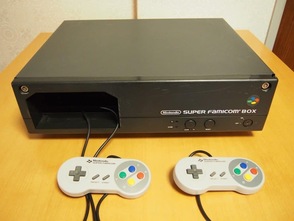 Nintendo SUPER FAMICOM BOX (SNES) + 8 games (Mario Kart, Bros, Star Fox, Tetris) – Super Famicom demo unit for Japanese hotels.