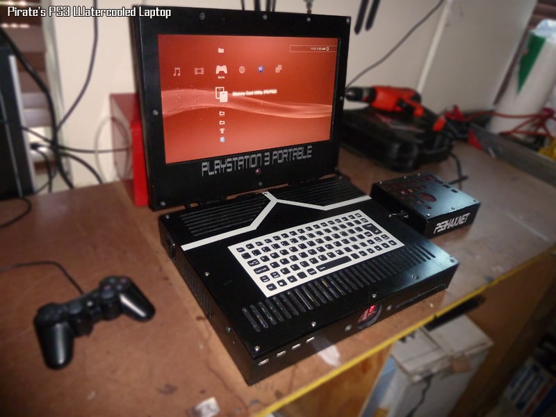 The PS3 is a water-cooled PS3 in a portable form, fully equipped with its own reservoir, pump and radiator. That’s quite a feat. It’s a little to bulky for my tastes to really funtion as a portable, but the damn thing is water cooled. More of a “look how epic this is” mod in my mind as opposed to being functional.