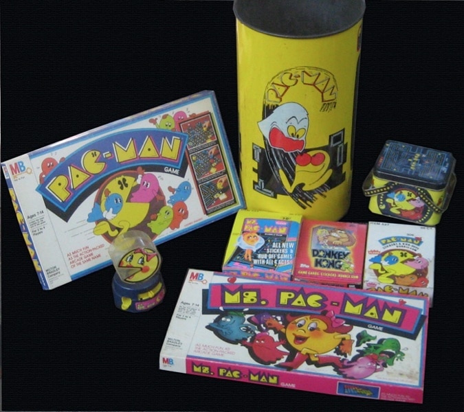 Vintage 1980 PAC-MAN Lot. Metal Trash Can & Lunchbox, Games, Bubblegum Mach